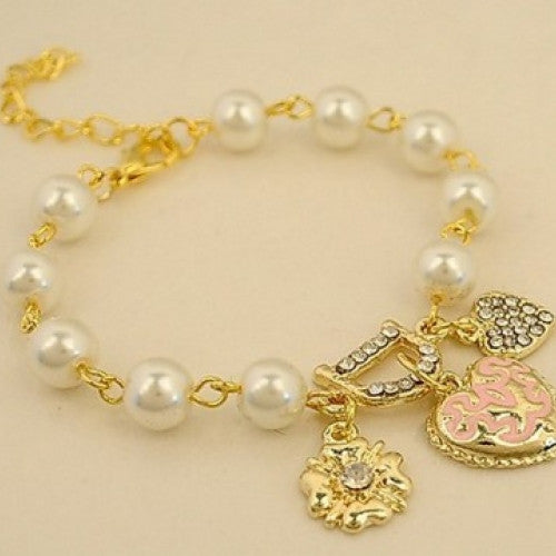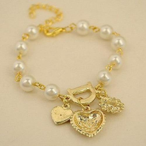 Heart D Pearl Love Heart Bracelet